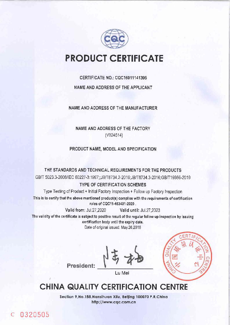 產(chǎn)品通過中國(guó)國(guó)家強(qiáng)制性產(chǎn)品認(rèn)證,ISO9001質(zhì)量管理體系認(rèn)證等管理體系認(rèn)證;